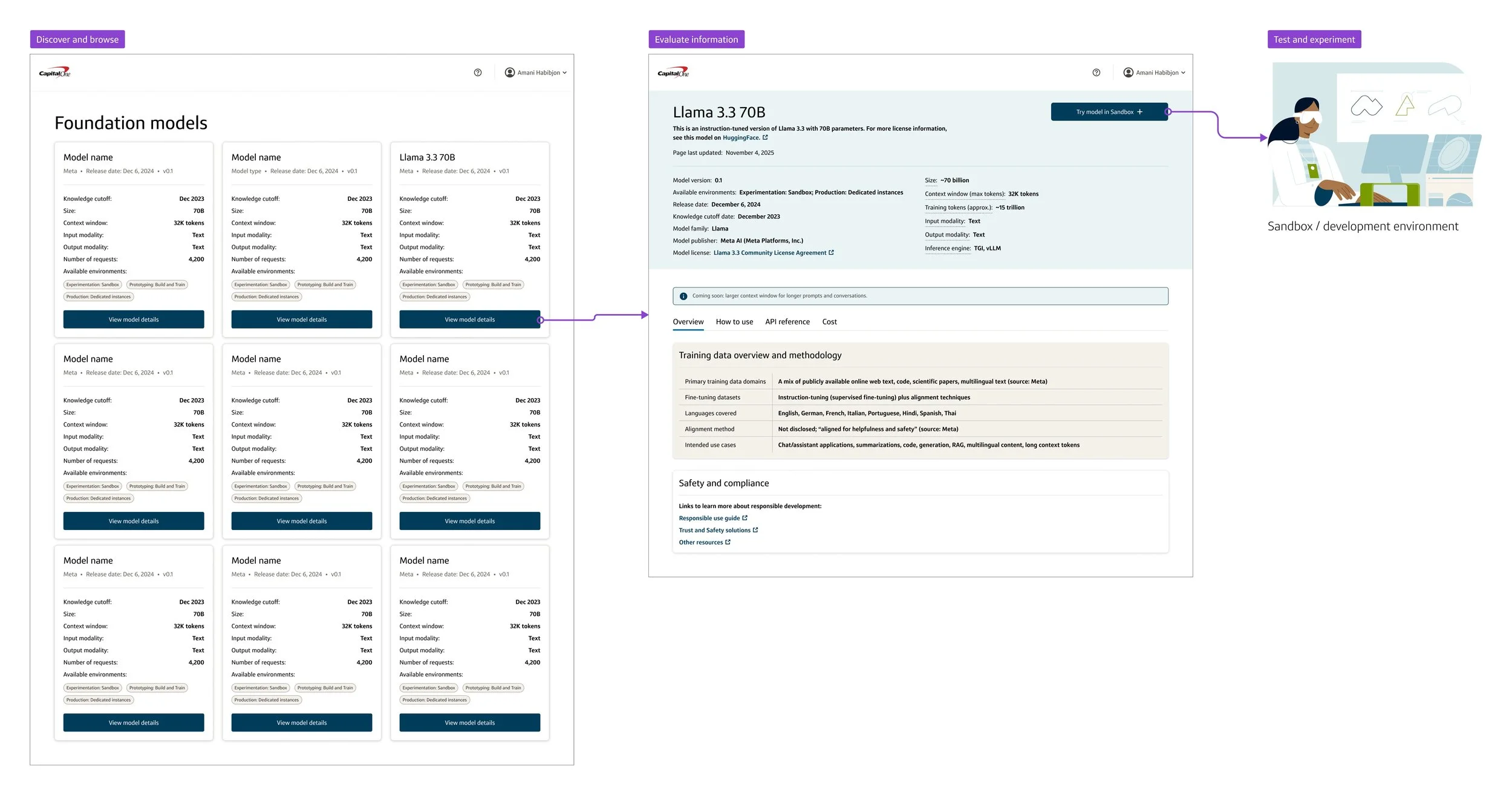 Solution: A familiar, industry-inspired flow: asset discovery -> evaluation -> test and experiment