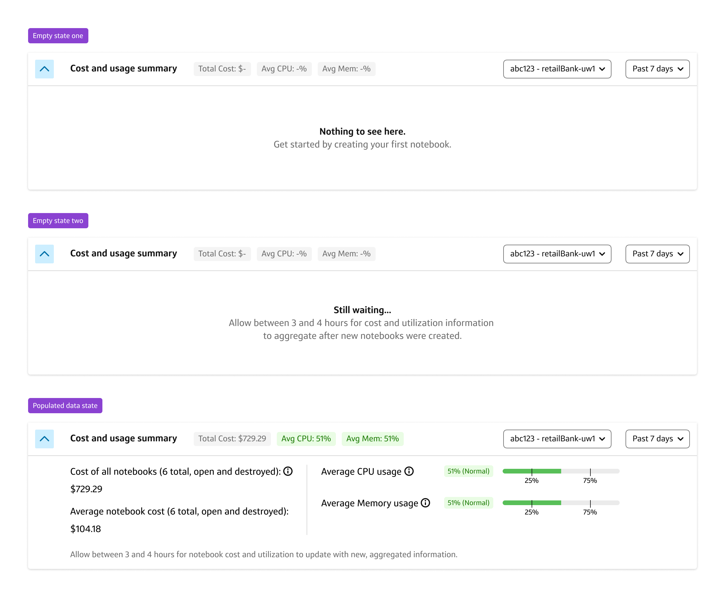 Cost and usage summary empty states